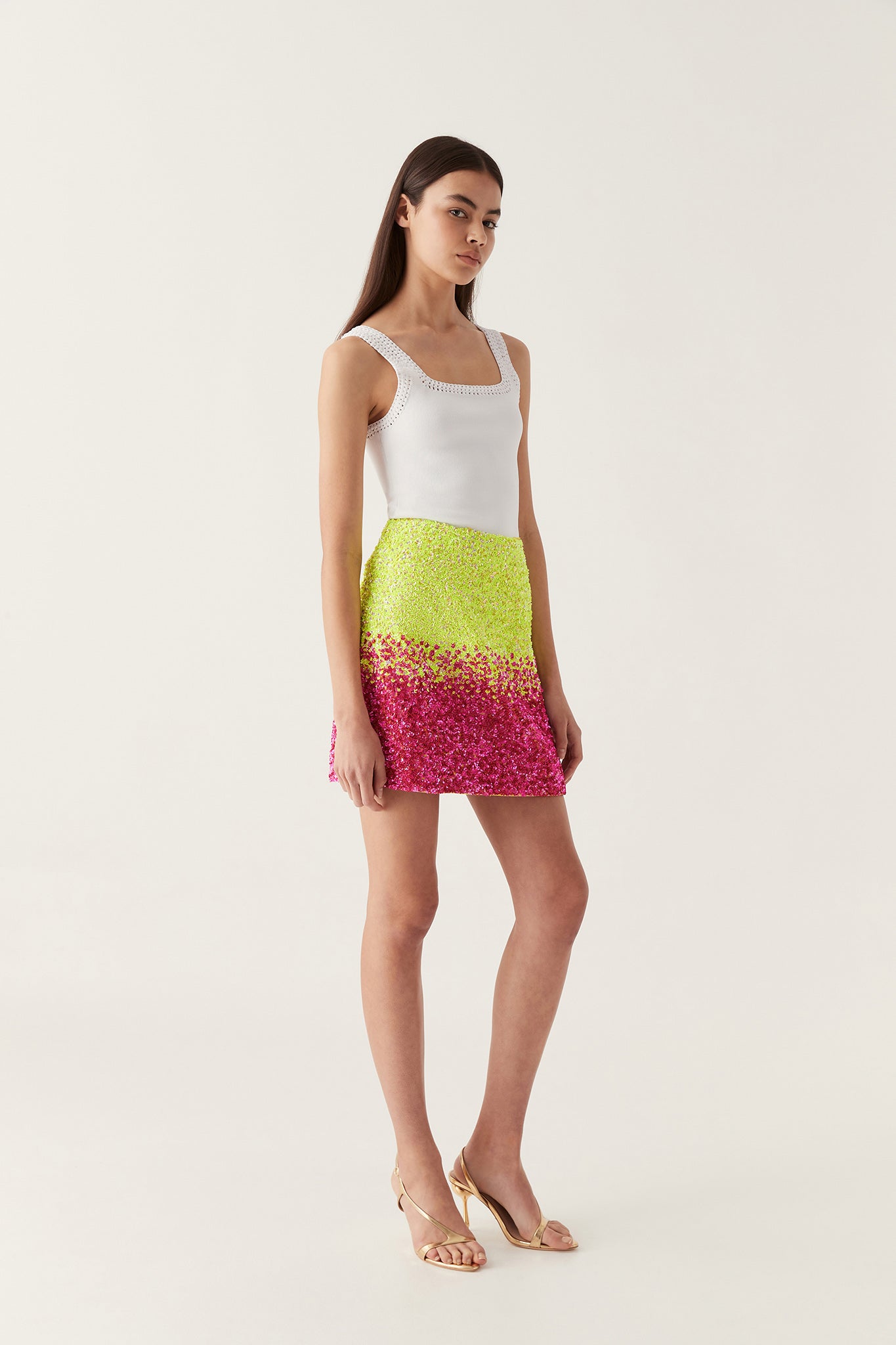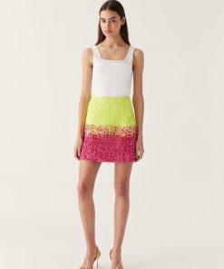 AJE Women’s Calypso Ombre Mini Skirt | Ombre Light Lime Green