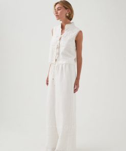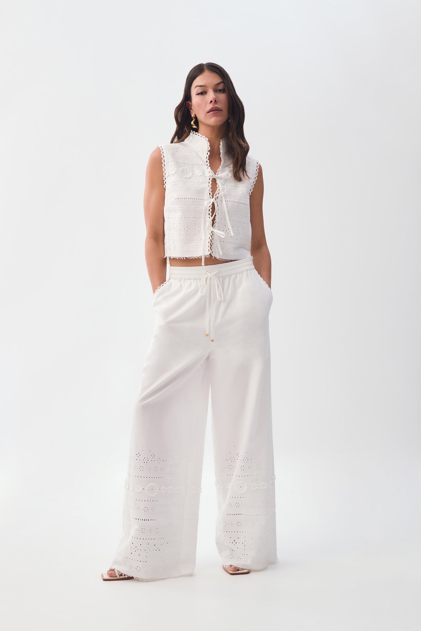 AJE Women’s Cloud Embroidered Pant | Ivory