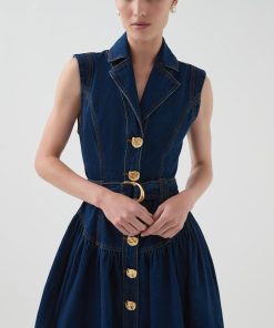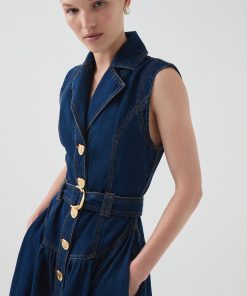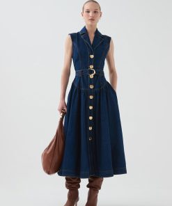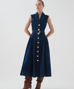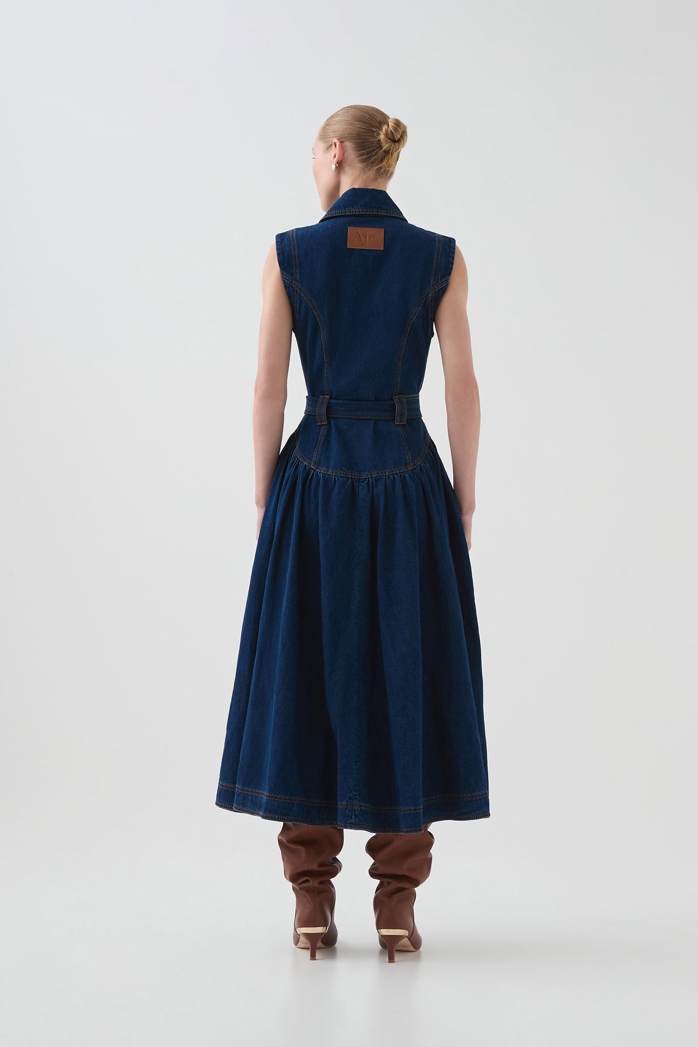 AJE Women’s Elena Belted Denim Midi Dress | Dark Classic Wash