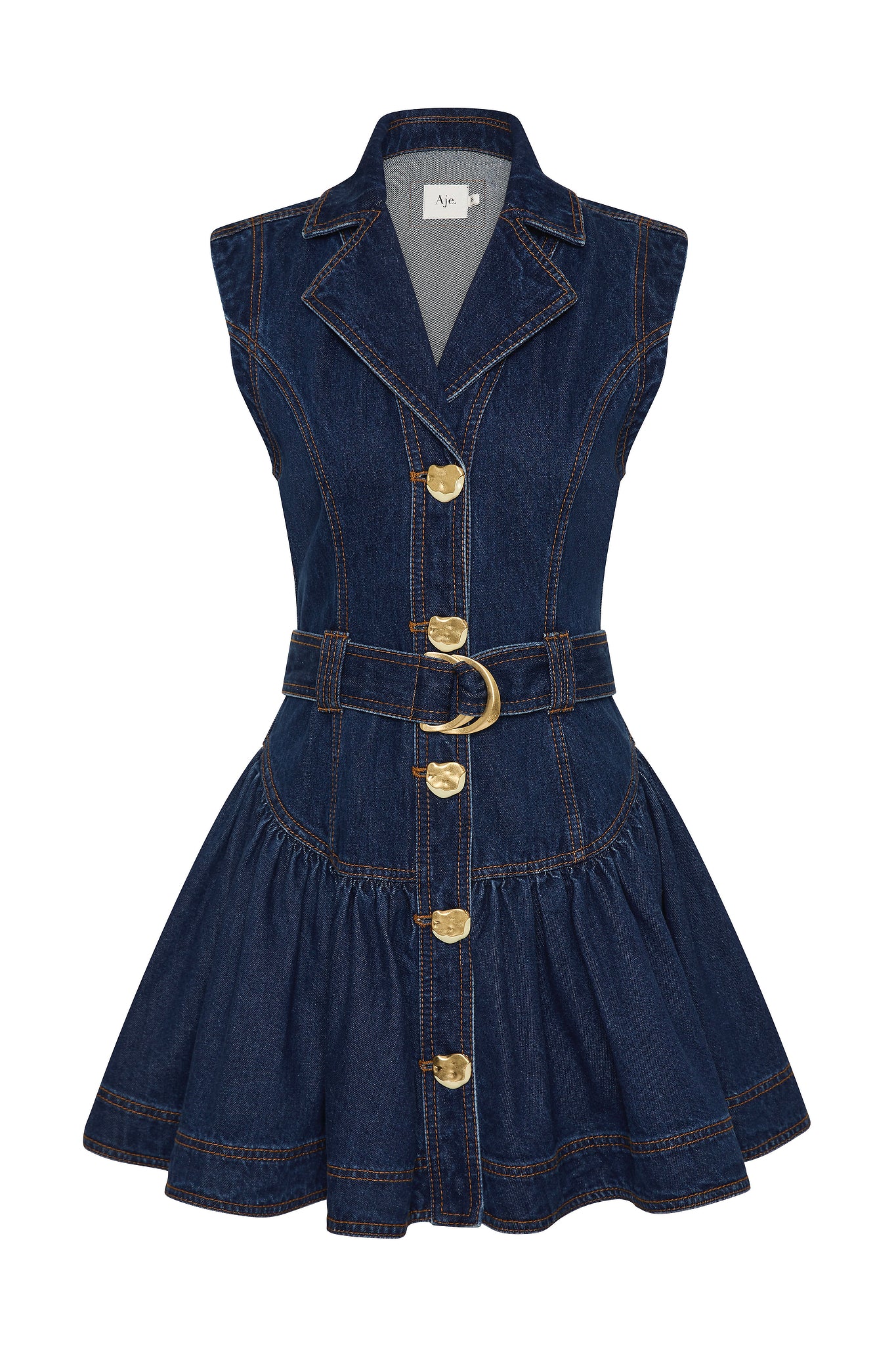 - Functional front placket with gold buttons