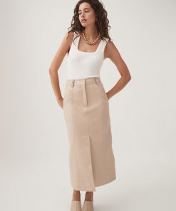 AJE Women’s Flourisher Midi Skirt | Natural Beige