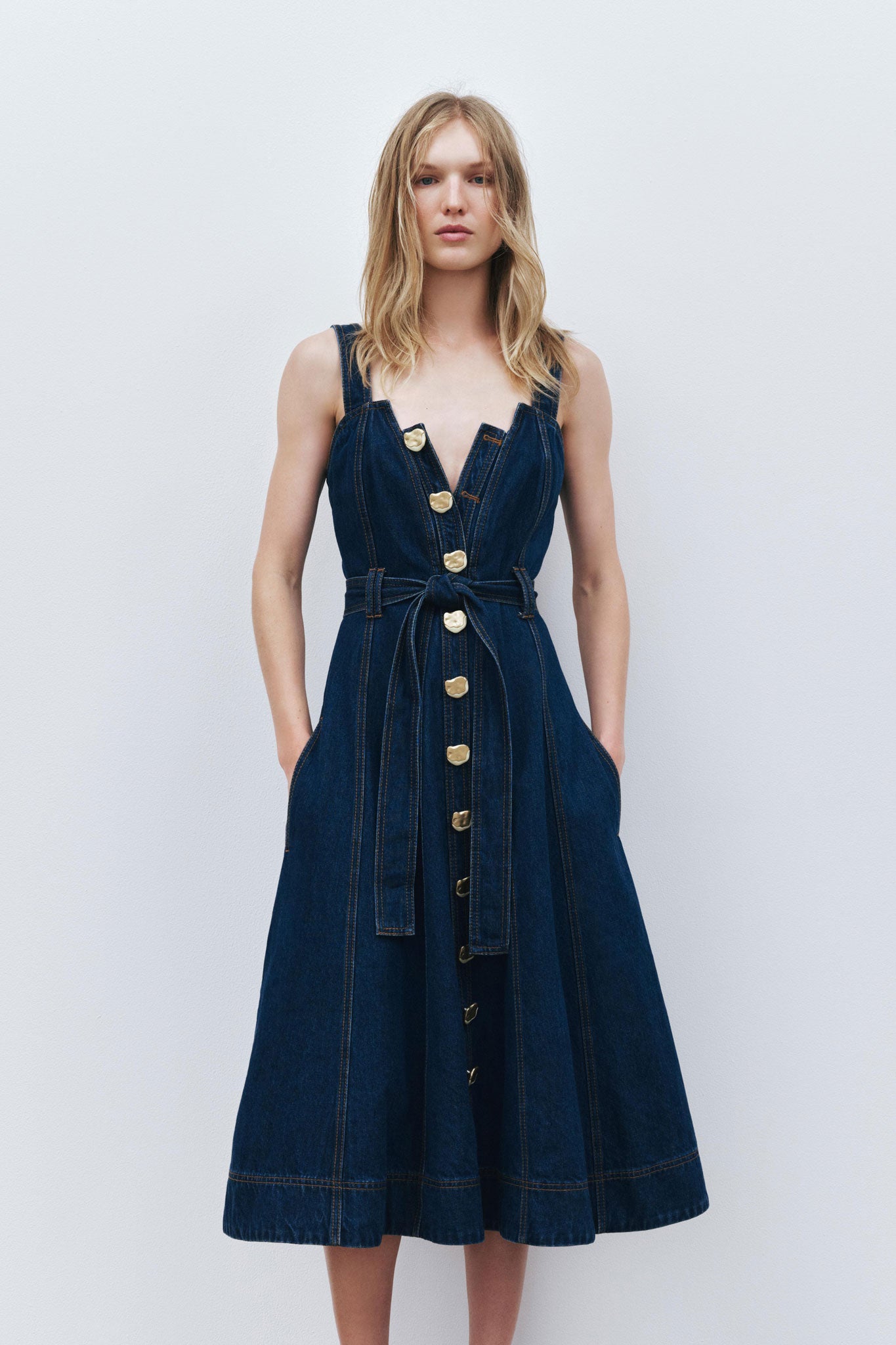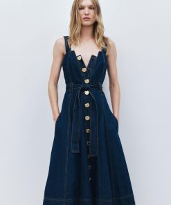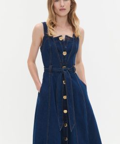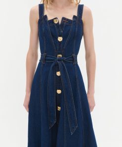 AJE Women’s Gianna Denim Midi Dress | Dark Classic Wash