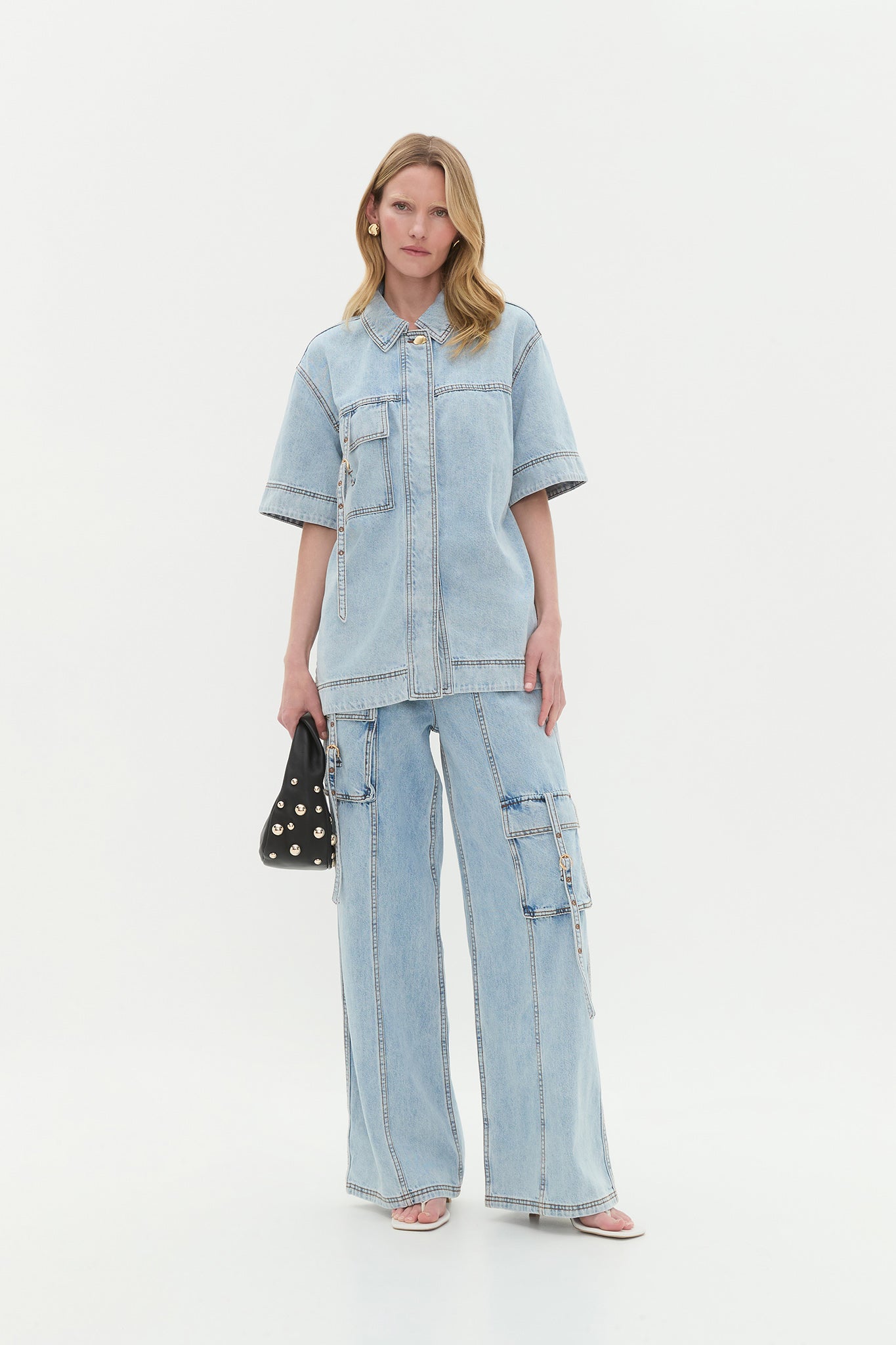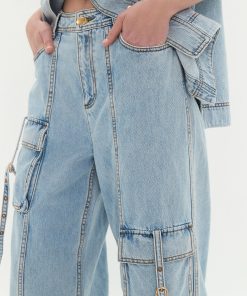 - Front cargo pockets with buckle detail