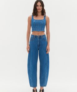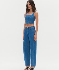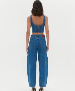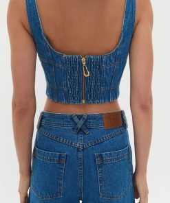 AJE Women’s Rainer Denim Longline Bustier | Mid Wash Blue