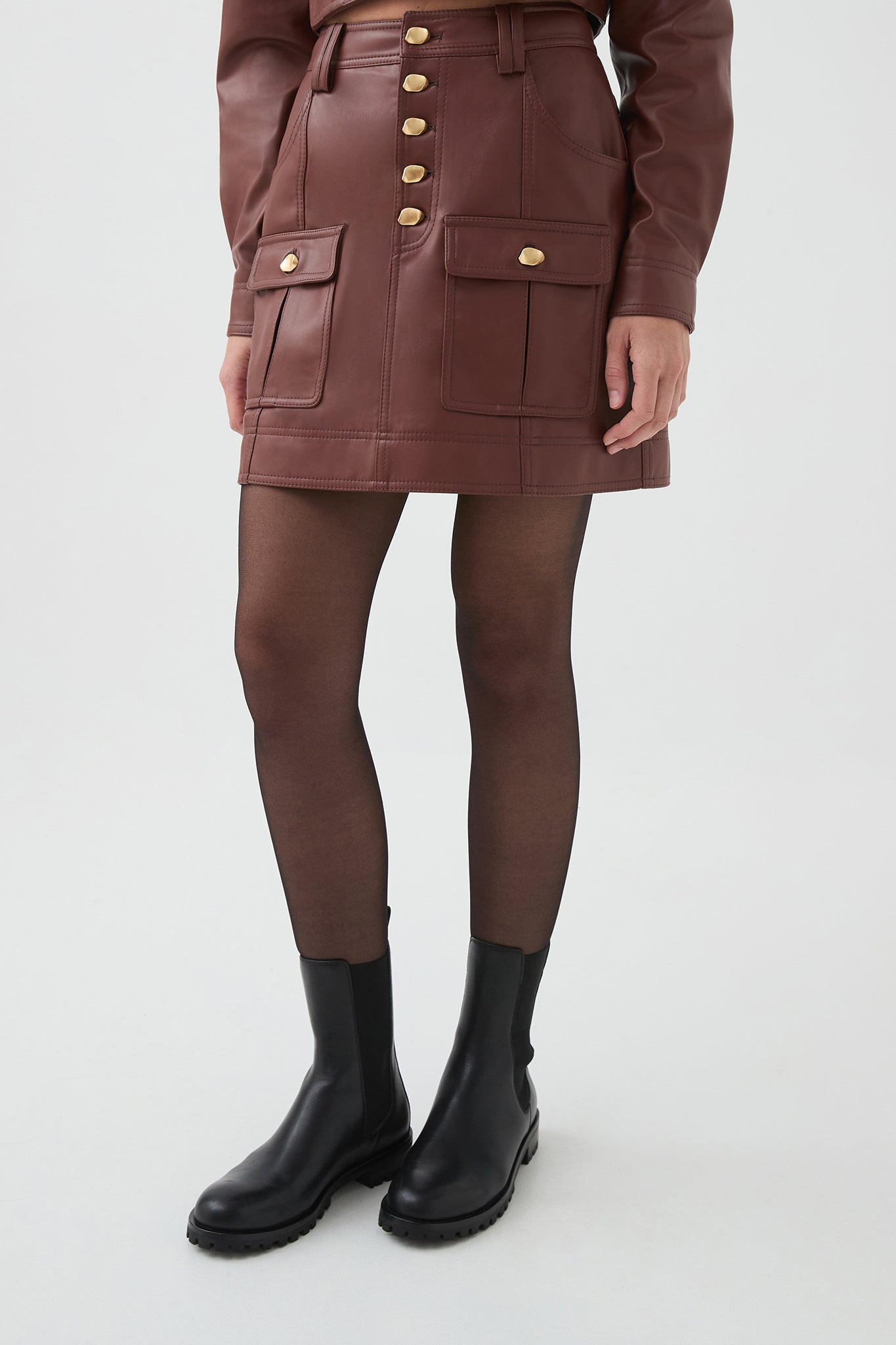 - Women’s vegan leather mini skirt
