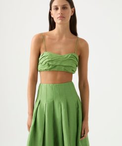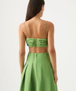 AJE Women’s Thea Draped Twist Crop Top | Fern Green