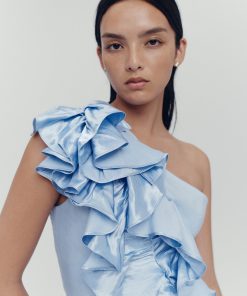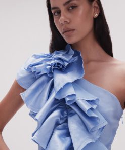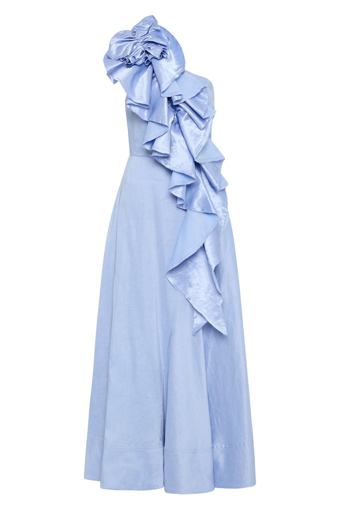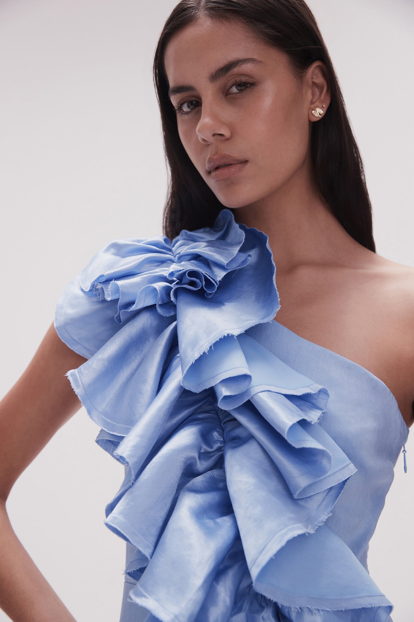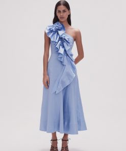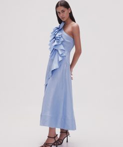 AJE Women’s Wedding Adelia Ruffle Midi Dress | Light Sky Blue