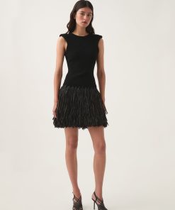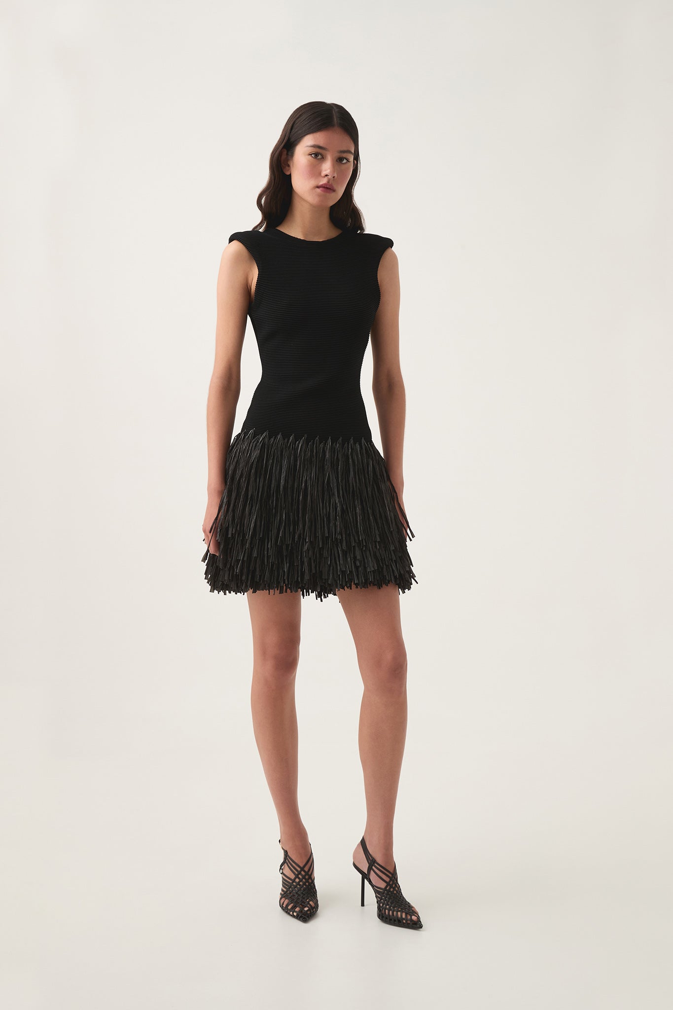 AJE Women’s Wedding Rushes Raffia Knit Mini Dress | Black